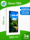 Окно глухое 900*500, 3 стекла , Глухое , Двухкамерный , Белый
