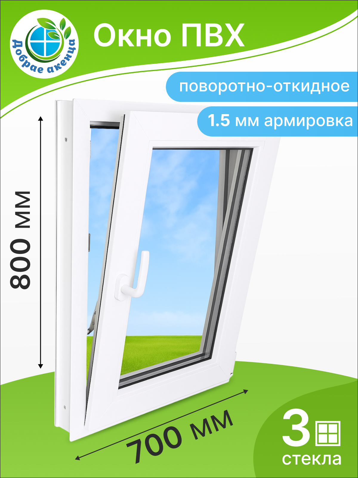 Окно поворотно-откидное 800*700, 3 стекла , Поворотно-откидное , Двухкамерный , Белый