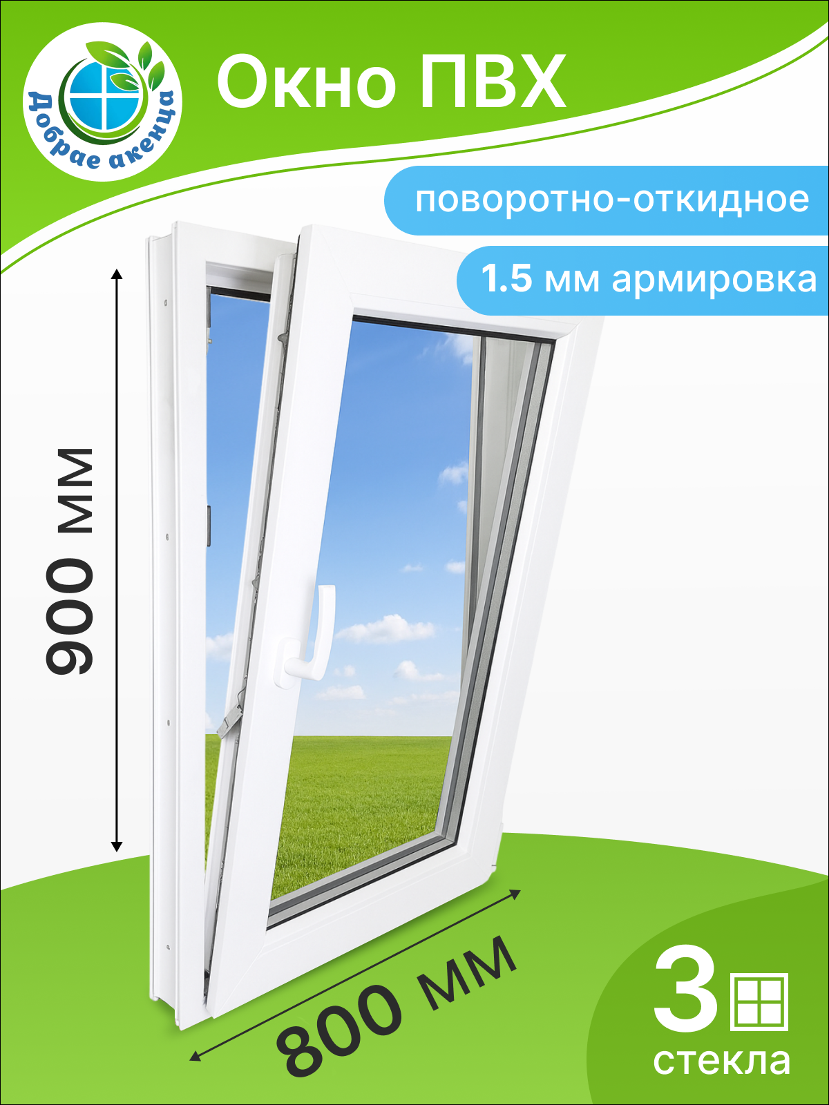 Окно поворотно-откидное 900*800, 3 стекла , Поворотно-откидное , Двухкамерный , Белый